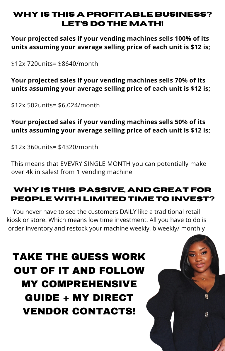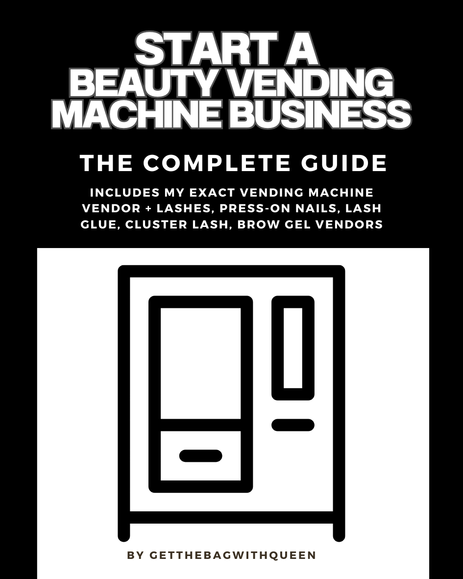 Whether you're dreaming of selling lashes, press-on nails, lip gloss, or skincare essentials, this guide walks you through every step of the process and my direct vendor contact can customize your machine to exactly what you want!